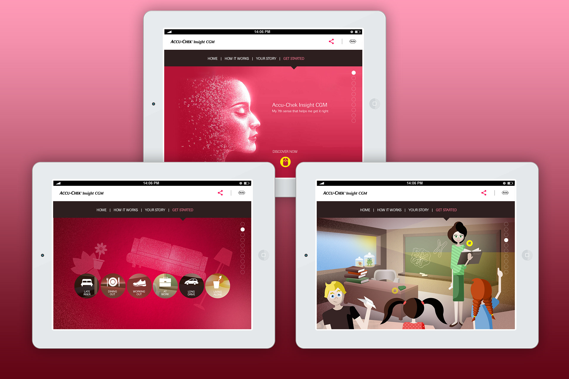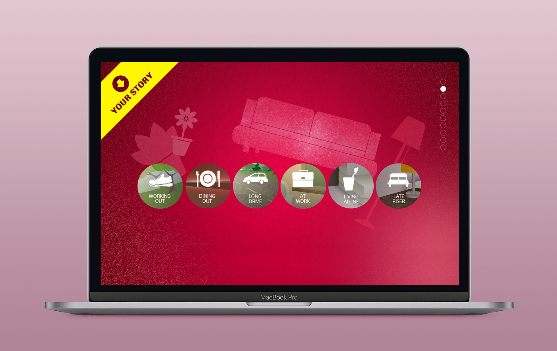 Designkonzept, Illustrationen, Icons, Screendesign und Animationskonzept der parallaxen Website