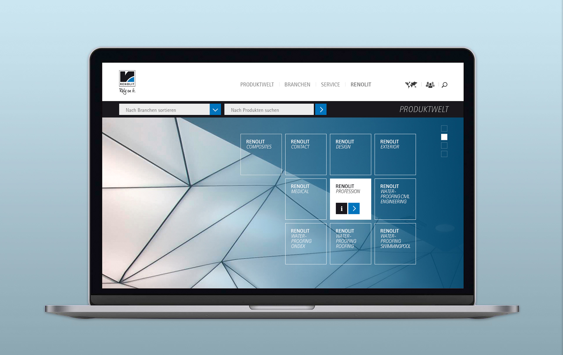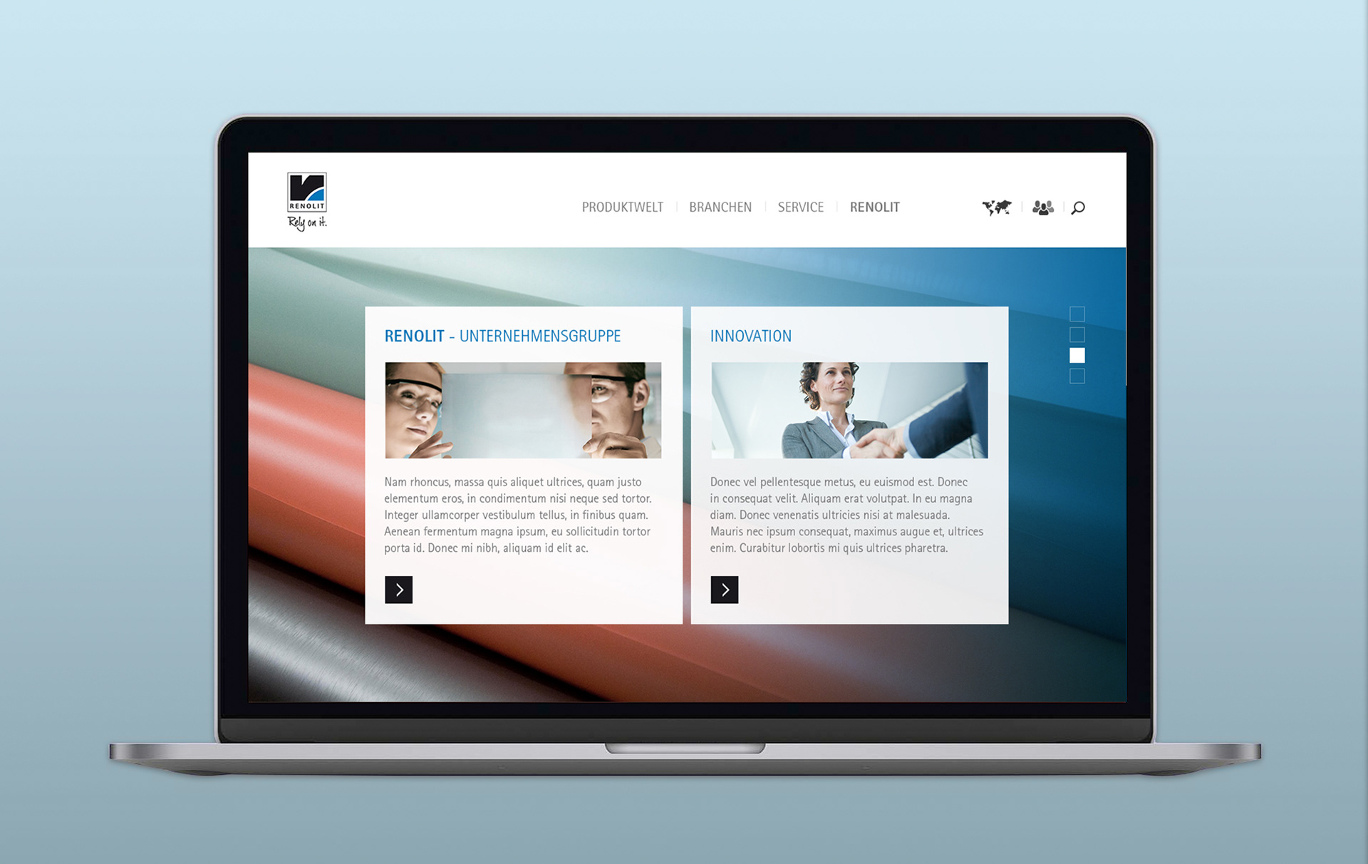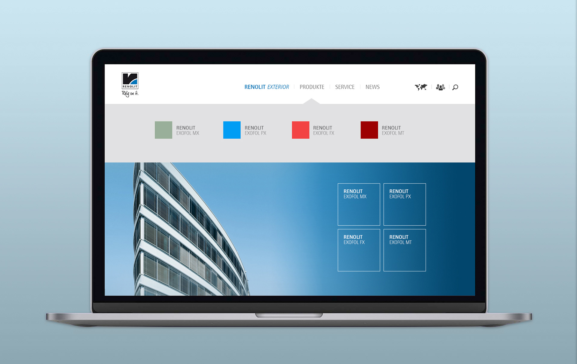 Animations- und Designkonzept der parallaxen Website. Screendesign und Iconentwicklung.
