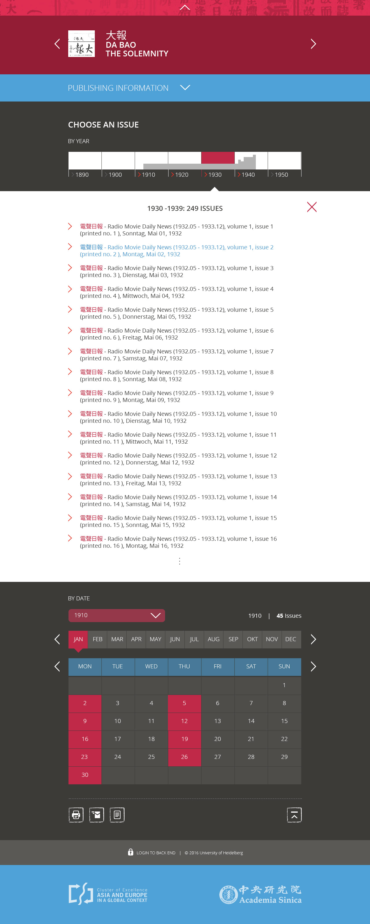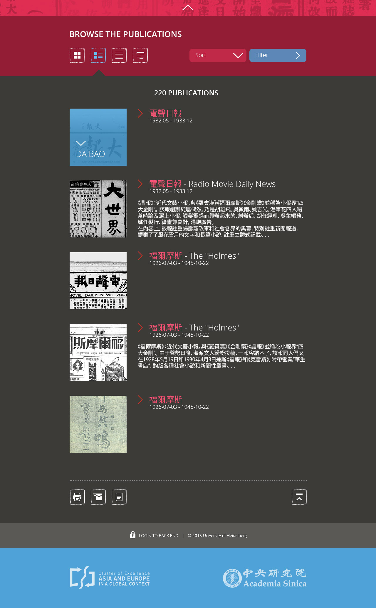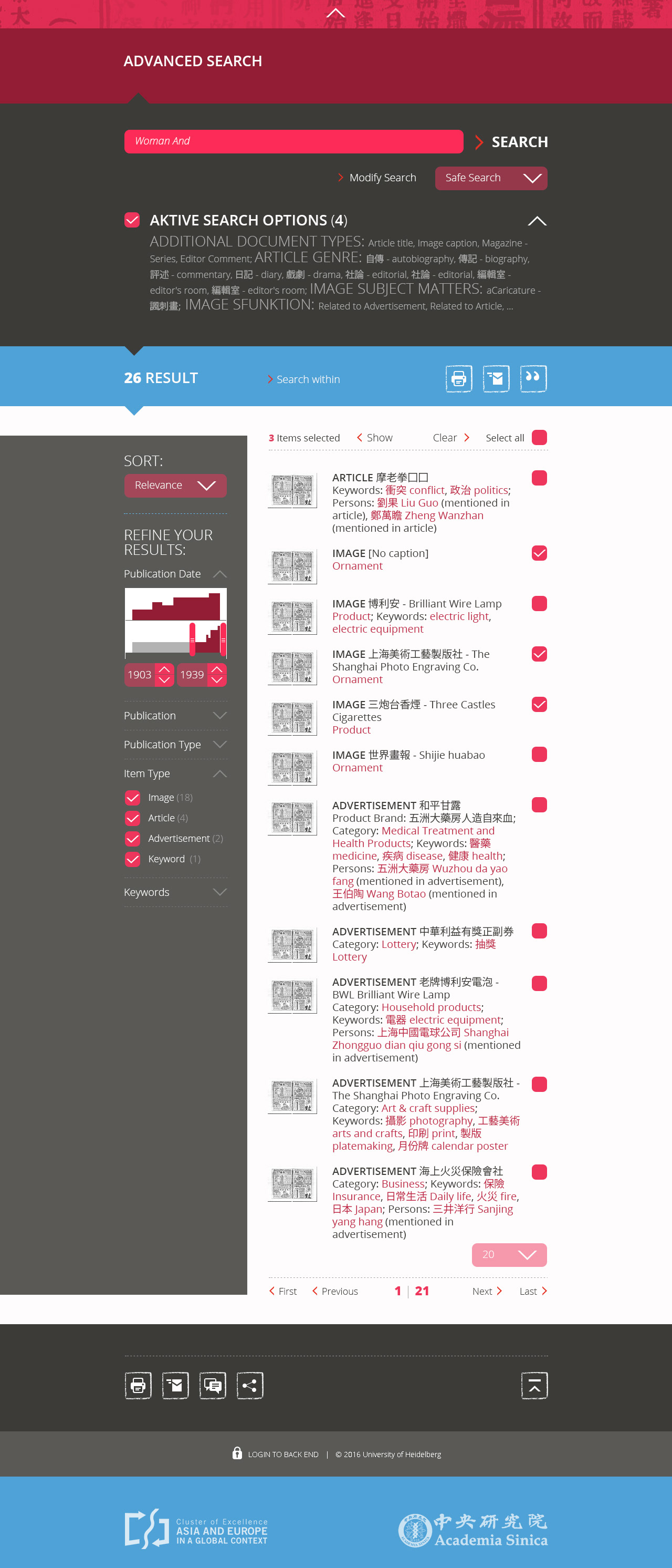Universität Heidelberg - Early Chinese Periodicals Online Datenbank Screendesign, Iconentwicklung und Plakatgestaltung